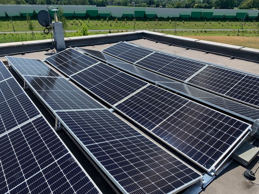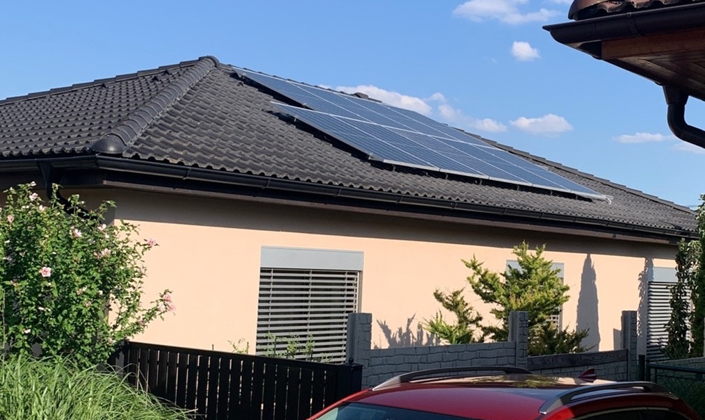 Jednoduchá, standartní instalace FVE na šikmou střechu s orientací na JIH s požadavkem na využití přetoků do vody