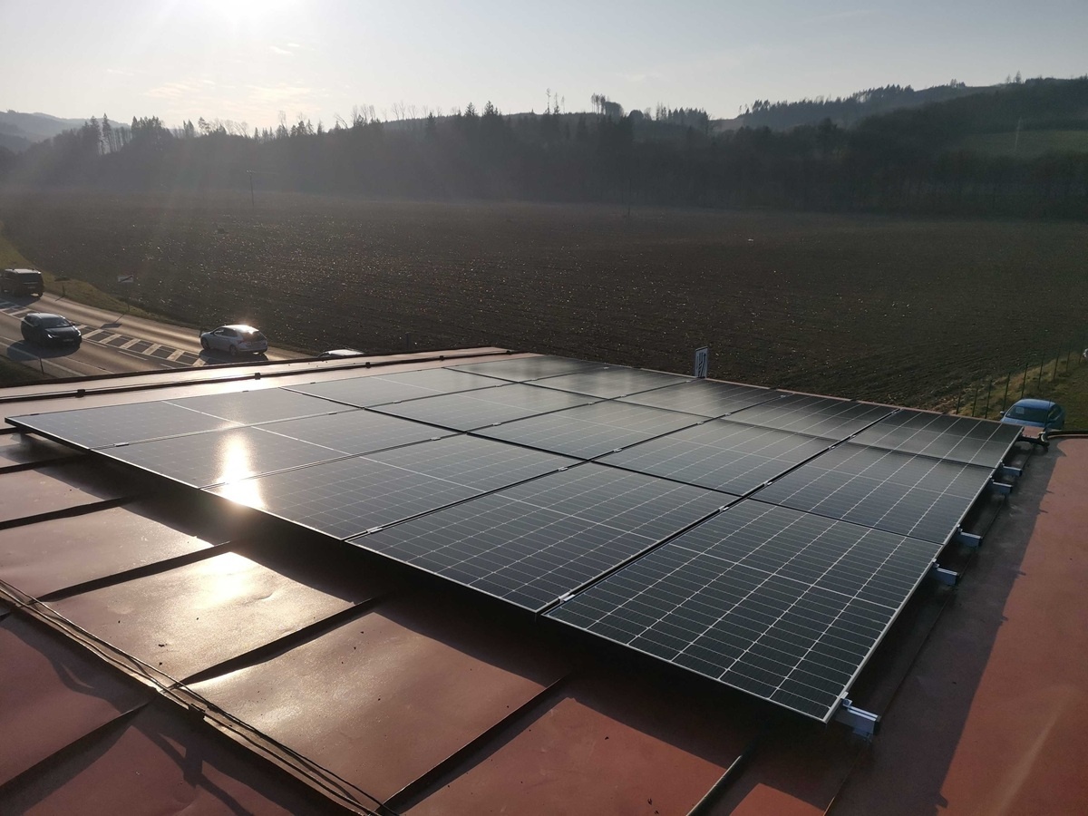Výkon FVE 8,19 kWp, baterie 10,24 kWh, střídač GROWATT SPH10000TL3, FV panely -18 ks Ja SOLAR 455 Wp, optimizéry TIGO, Growatt Groboost – přetoky do vody