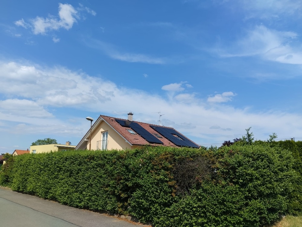 Jednoduchá, standartní instalace FVE na šikmou střechu s orientací na JIH s požadavkem na využití přetoků do vody