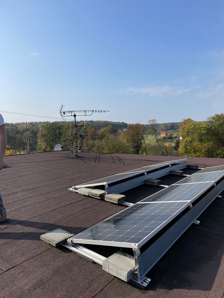 Zákazník přišel k nám s požadavkem snížit spotřebu na svém bytovém domě, primárně řešeno pro pivovárek který je součastí nemovitosti. Instalace proběhla na chráněnou budovu Památkového Ústavu, kotvení konstrukce se provedlo na šikmou střechu kde byla podmínka kompletní provedení v černé barvě jak panely tak konstrukce. Pod panely jsou instalovány optimizéry pro optimální výkon FVE.