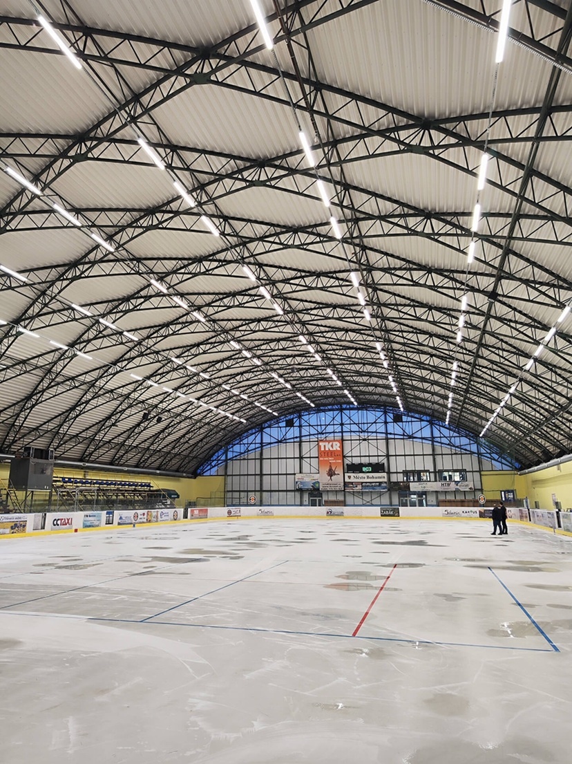 Výměna osvětlení ve sportovní hale pro stolní tenis pro lepší úsporu a technické vybavení. Realizace proběhla podle požadavků zákazníka „na klíč“.